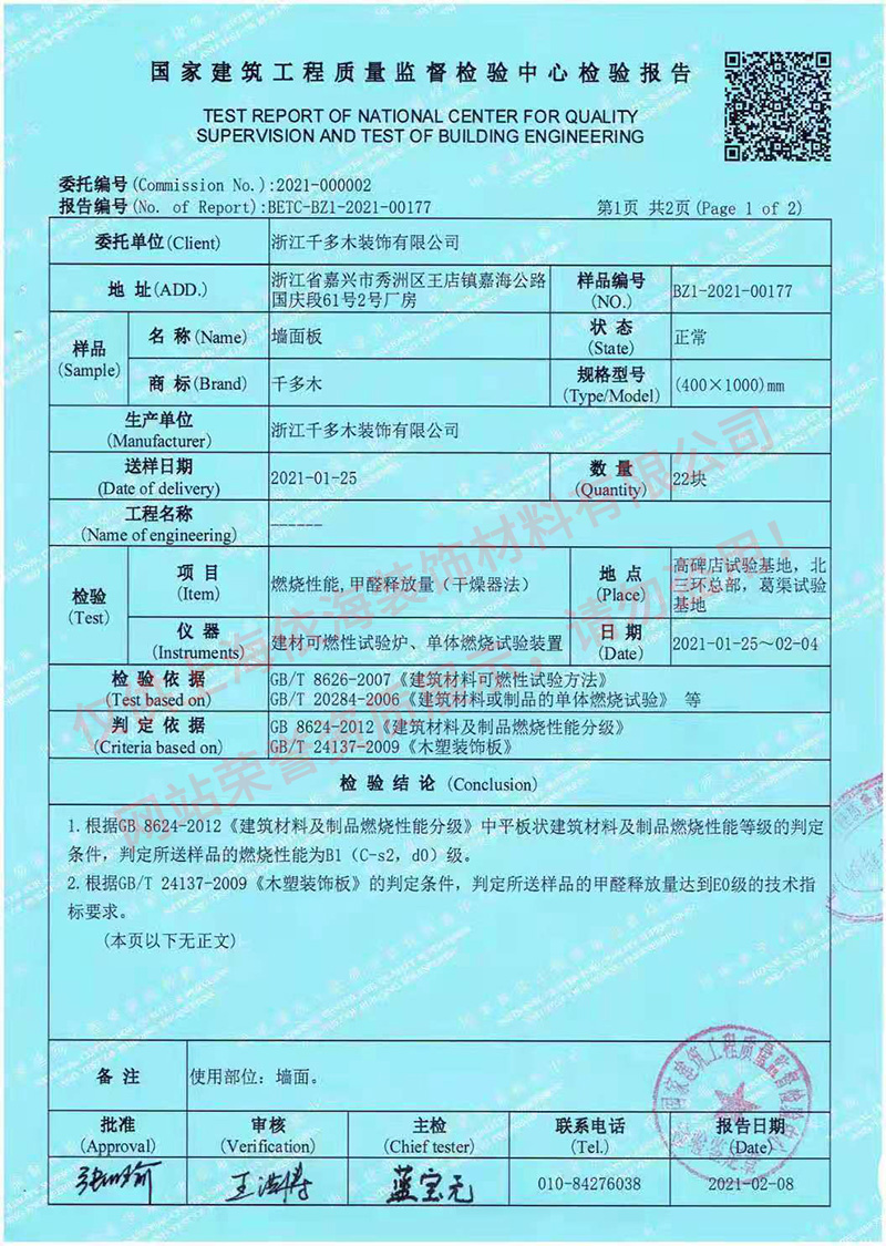 墻面板 檢驗(yàn)報(bào)告